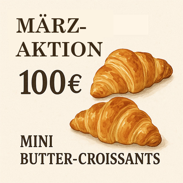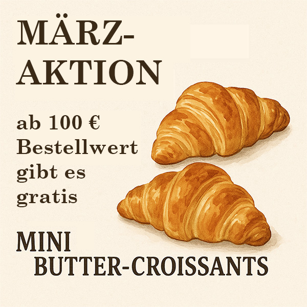 Leckere belegte Baguettes schmecken zu jeder Jahreszeit und werden von uns immer mit frischen Zutaten belegt und nach original französischem Baguette Rezept hergestellt. Ab sofort und bis Ende März erhalten Sie auf alle Bestellungen ab 100 € gratis Mini Butter Croissants dazu! Außerdem ist jedes 15. belegte Baguette gratis! Denn Sie wissen ja: Kleine, leckere Süßigkeiten helfen in der dunklen Jahreszeit am Besten. Wir freuen uns auf Ihre Bestellung.